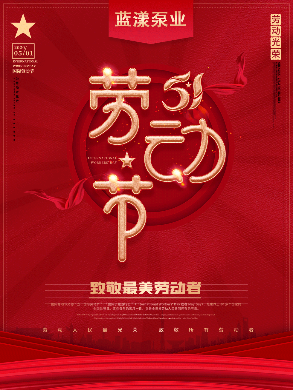 一年一度的五一小長假將至,在這里上海藍漾泵業制造有限公司向您及您的家人送出最真摯的祝福,提前祝大家勞動節快樂!